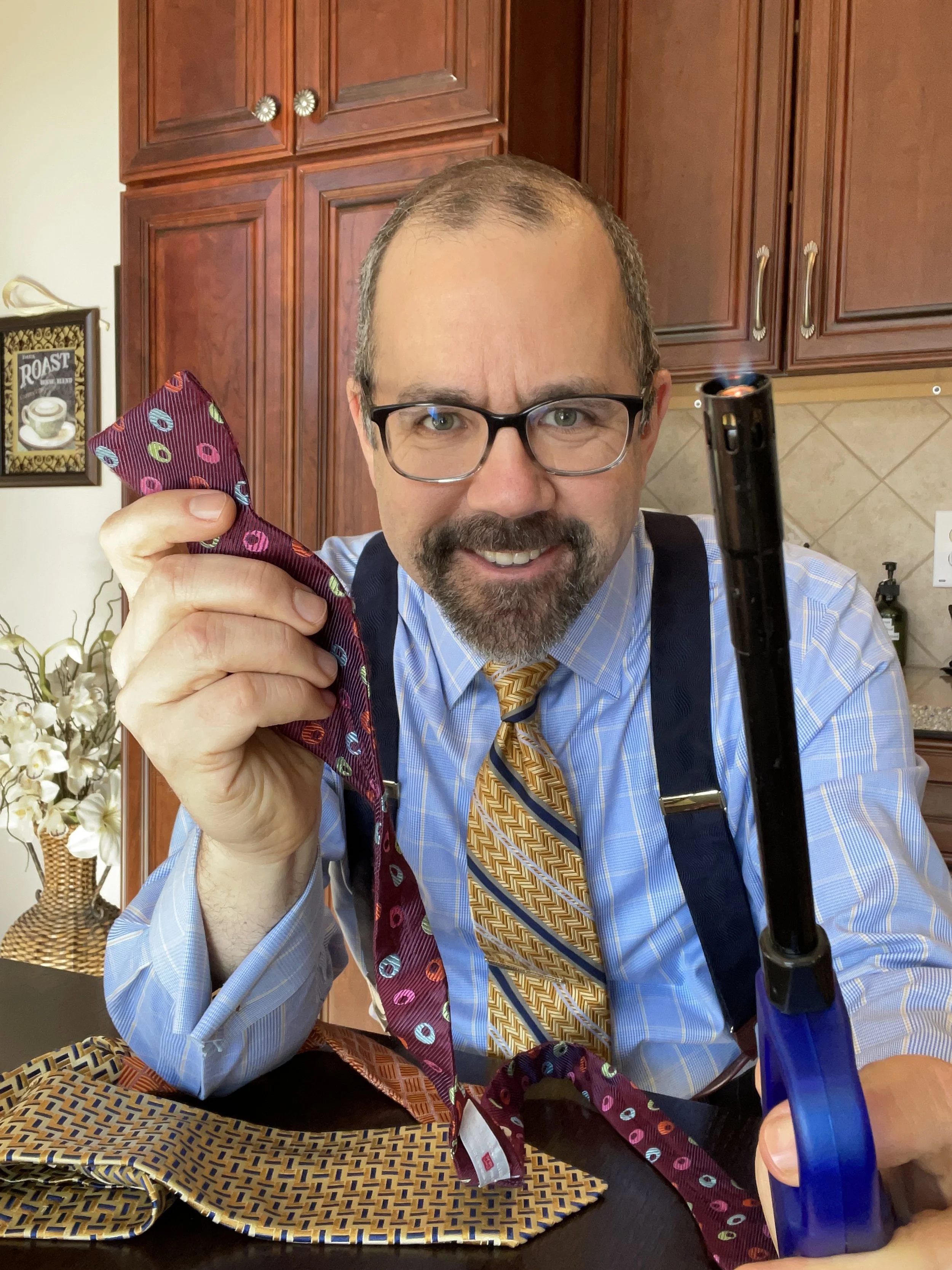 BK’s SUIT TIP: The best, quickest, most efficient, and longest lasting method to remove frays from a silk tie is not to cut them, but to SINGE them!